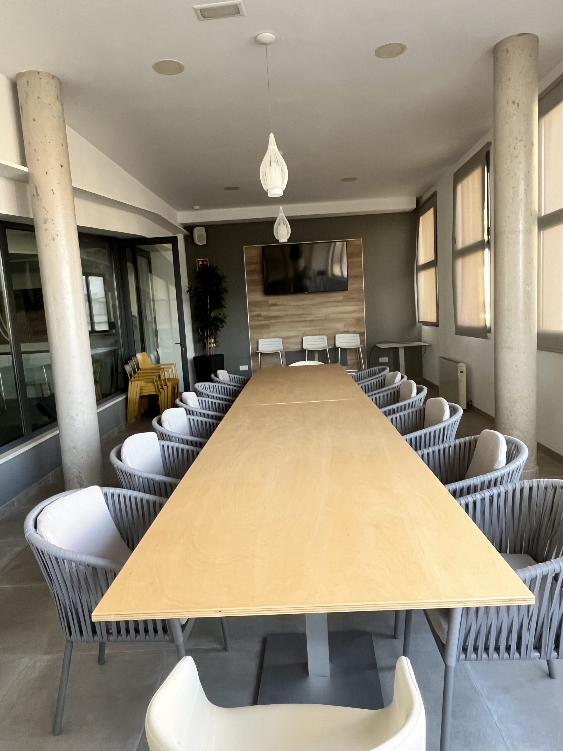 ESPAI34 ofrece salas de reuniones ideales para grupos de 25 personas en Muro, España. Nuestras instalaciones cuentan con pantalla, equipo de sonido ,aire acondicionado y vistas al exterior, creando un ambiente muy luminoso y estimulante para tus reuniones de negocios. Adicionalmente, tenemos la opción de contratación de coffee break para que puedas disfrutar de un descanso productivo en medio de tus reuniones.